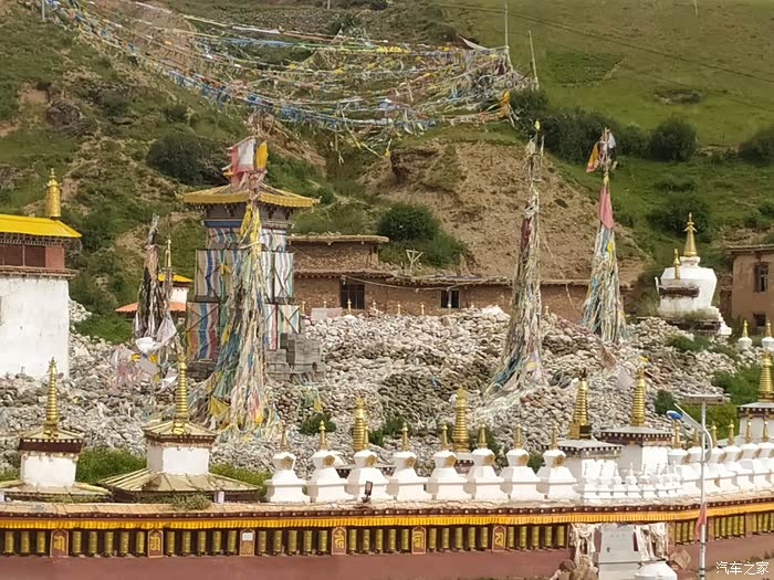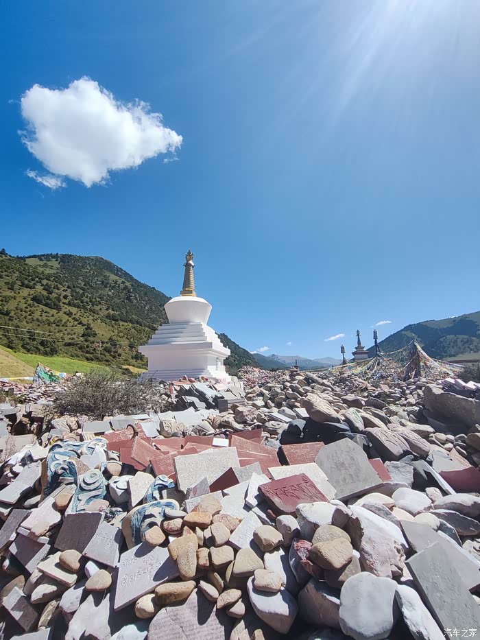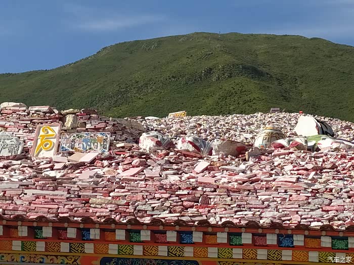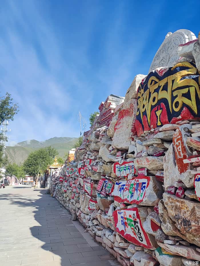 2023.09. 03第三十三天:新寨嘉那玛尼石经城是一个朝拜着的聚集地,一大早就人潮涌动好不热闹,玉树新寨嘛尼石堆是最便捷参观的景点,它就座落在G214的路边上。嘉那玛尼石堆位于青海省玉树藏族自治州结古镇郊两公里处,共由20亿块玛尼石组成。玛尼石,就是刻有佛经的石头,是虔诚的藏民在普通石头上刻写经文以及各种佛像和吉祥图案,并饰以五彩制成。最常见的就是刻有佛教六字真言“唵嘛呢叭咪吽”的石块,每个字的颜色均有不同,石块可大可小。而结古镇的嘉那玛尼石经城始建于公元1,700多年前,占地面积25亩(约合1.67万平方米),现有玛尼石25亿块,东西长283米,南北宽74米,高2.5米,嘉那玛尼石堆是载入吉尼斯世界纪录的世界最大的玛尼堆。