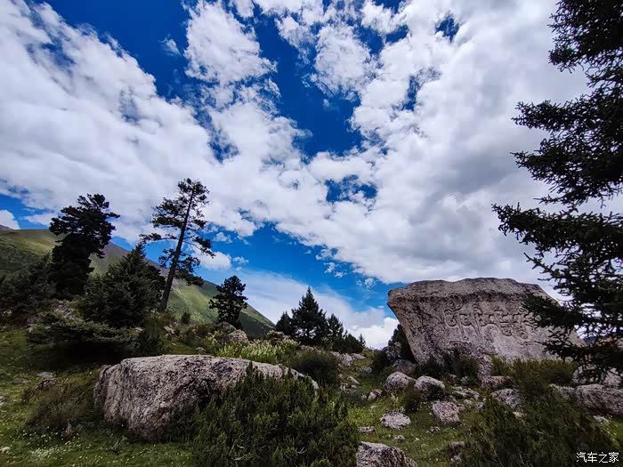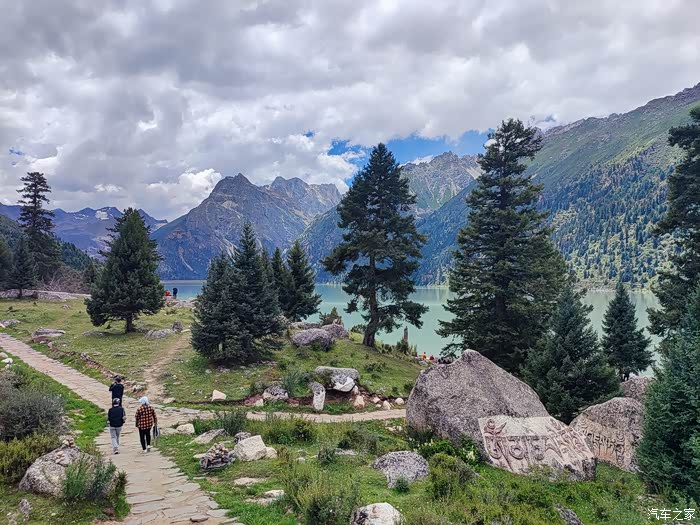 2023.08.09第八天:早上泡着温泉看雪山,中午游览玉隆拉措20门票绝对超值,雪山湖泊,云杉高耸,灌木茂密,景区内散落的大石上刻满了经文。过雀儿山隧道长7079米,下午小逛德格印经院,夜宿雪巴沟景区停车场。海拔3519米。