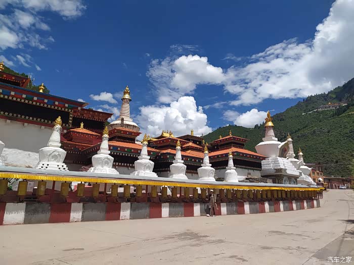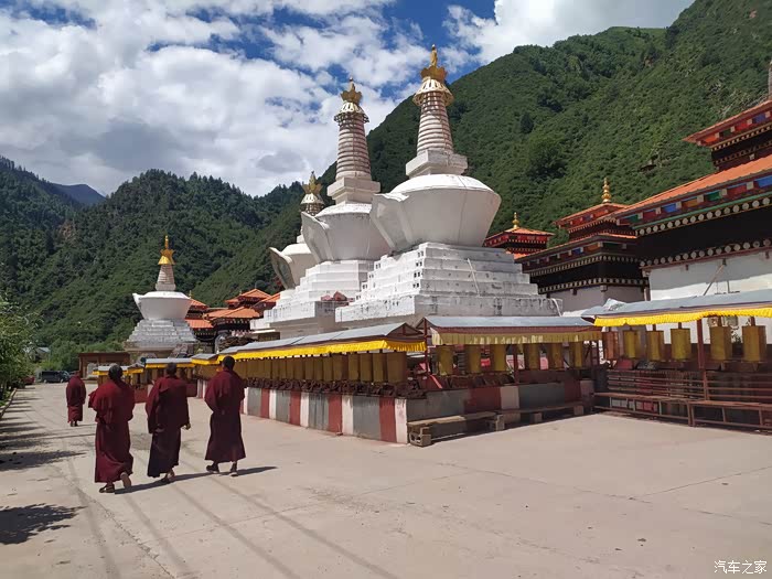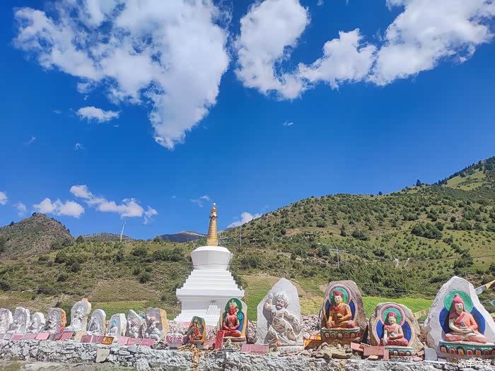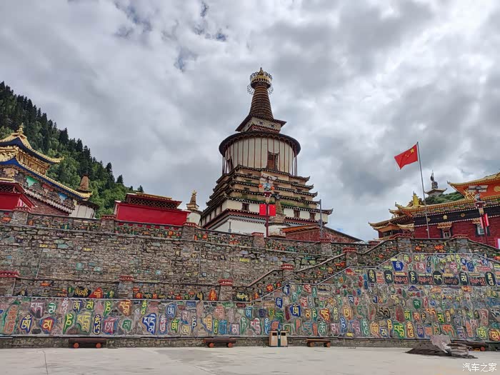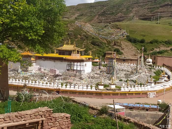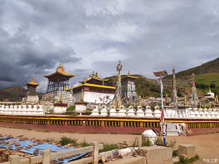 2023.08.07第六天:臃肿苯教最大的寺庙朗依寺,走阿两路,看棒托寺佛塔石刻,尕卡岭观景台,转国道317,泡壤古温泉幸福克久1314,住壤古村温泉旁。气温22~7度。(全天行驶232公里)