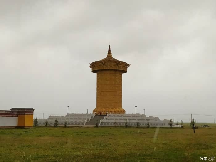 玛曲县阿万仓宁玛寺,又称阿万仓召岱娘玛寺,位于甘肃省甘南藏族自治州玛曲县阿万仓乡扎西贡色滩的中心,宁玛派是藏传佛教中历史最悠久的一个教派。该寺院于2018年建成了号称世界上最大的转经轮。数据显示,宁玛寺大藏经转经筒建筑高约42米。其中:转经筒高度约38米,下筒直径12.6米,上筒直径17.6米,旋转经轮总重量达320吨。简体浮雕由尼泊尔工匠纯手工锻铸鎏金而成,用掉60公斤黄金,内部藏有经书约11万册。