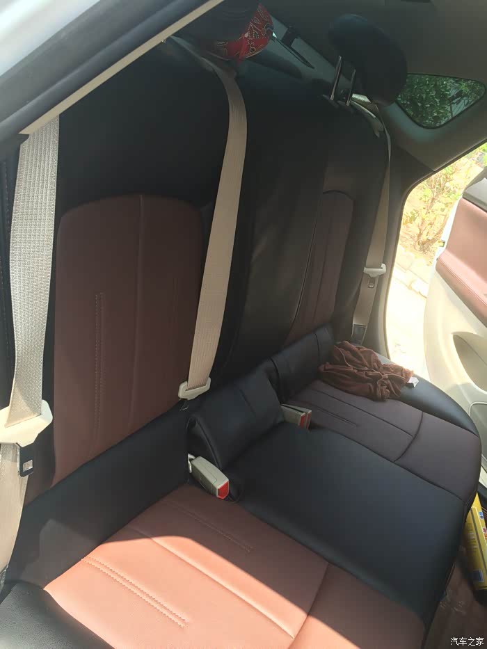 犹豫了好久,担心改装了怕影响皮囊,但是浅色的内饰太容易脏了,让孩子弄的脏兮兮的,最终决定还是改了,然后一直纠结的就是包什么颜色的,一直纠结了一个月,最后用黑色和棕色搭配,个人觉得还可以吧。过程中出了一个小插曲,包好以后安全座椅的口没有留,又返工农了一个小时左右,辛苦师傅了,下面看图片吧