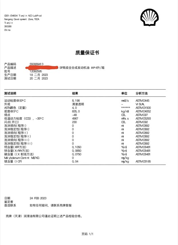 壳牌定制版0W-20机油,大佬们帮忙看看这个油是什么水平的,