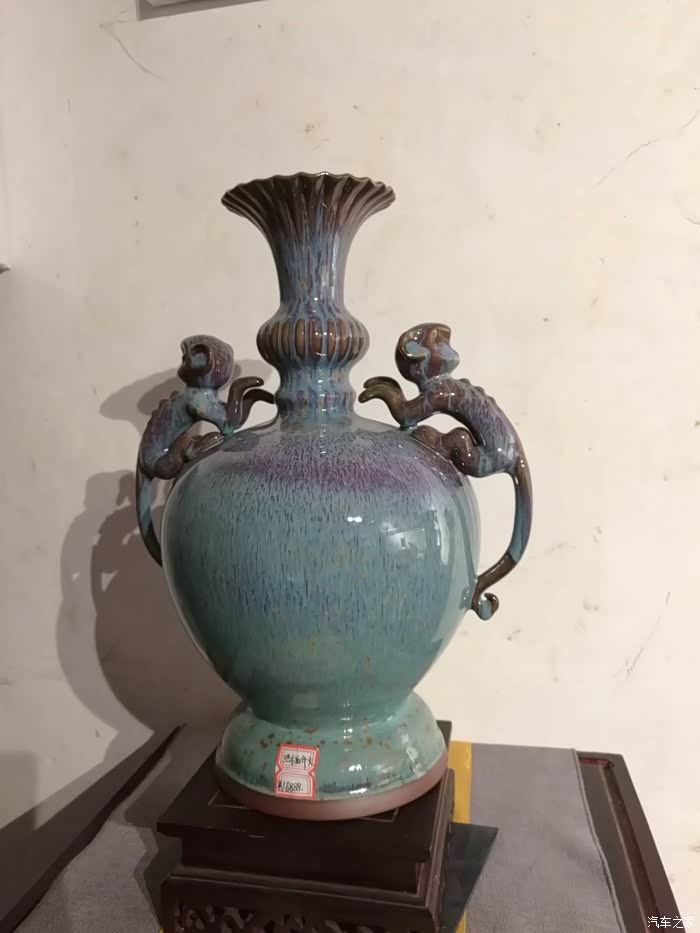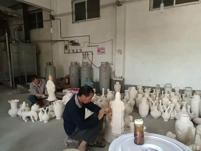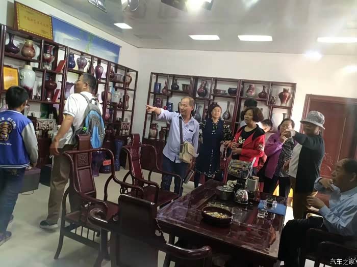 路遇钓源堂钧窑厂,顺路进去参观,在裴国乾大师的引导下,参观了钧瓷的制作过程。裴国乾出生在陶瓷世家,自幼受钧陶艺术的熏陶,多年来持之以恒,坚持传统钧瓷研究,无论在钧瓷的窑炉建造、釉料配方及烧制方面,都很有研究,所烧制的钧瓷作品独树一帜,在煤烧钧瓷的烧成率方面,在禹州钧瓷窑口首屈一指,堪称奇才。1993年被河南省劳动人事部门评定为省工艺美术大师。裴国乾大师所工作的钧源堂钧窑的前身是盆景工艺美术厂。致力于煤烧钧瓷的传统研究与烧制,目前所生产的钧瓷产品达到本行业先进工艺水平。2013年参赛作品在钧瓷文化艺术节获多项金奖;2014年5月份在文化部主办的北京国际贸易中心工艺版块获金奖,作品《鬼谷子印象》获国家非物质文化遗产保护。