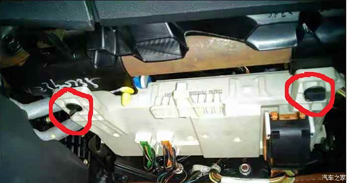 然后再拧下这两颗黑螺丝,控制盒就掉下来了