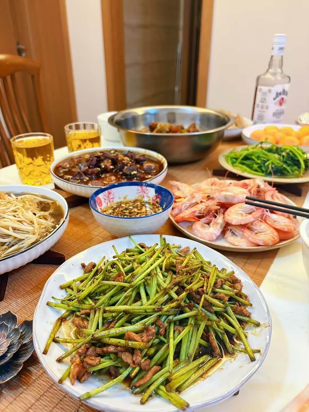 开了三个多小时到朋友家,老远就看见他站在小区门口招手。进家门一看,好家伙,满满一桌子菜,油炸大虾、糖醋排骨、凉拌毛豆全是我们上学时爱吃的。酒过三巡,从工作聊到家庭,吐槽着生活里的鸡毛蒜皮,回忆宿舍里的糗事,不知不觉就聊到了天黑。