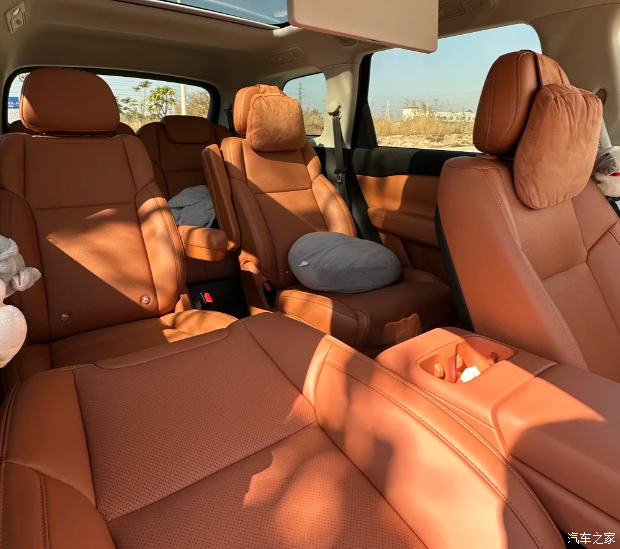 最让我满意的是它的空间灵活性,4915mm车长搭配2825mm轴距,不是虚标数据,实际乘坐感很实在。我选的是6座版,平时带爸妈和孩子出行刚好够用。二排独立座椅包裹性不错,爸妈坐上去能自然放松,我妈身高165cm,腿部能留出近两拳空间,长途坐一小时也不会喊累,中间过道宽度足够,孩子能自由穿梭在二排和三排之间,不用一直黏着大人。