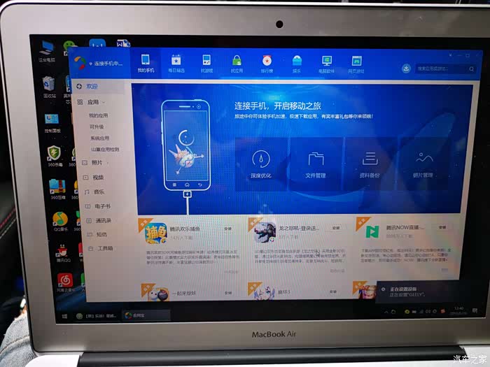 第一步电脑里提前安装完成应用宝,然后安装QQ音乐车机版前将笔记本连接到手机或车机的4G热点。