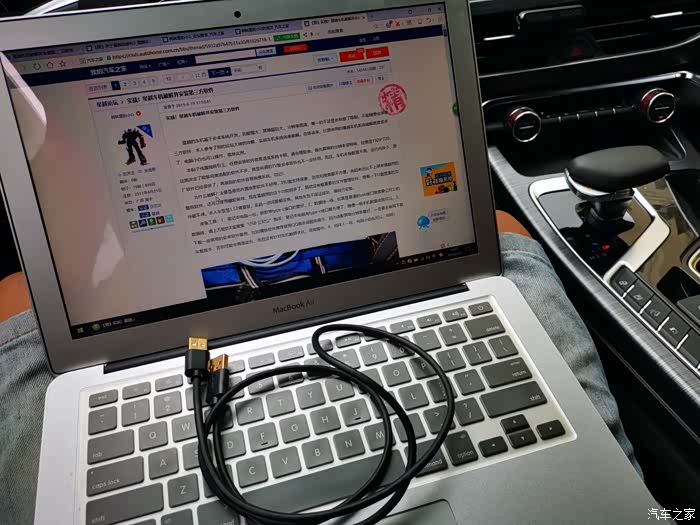 在多媒体USB口上插上连接线。开始电脑应用宝连接车机。