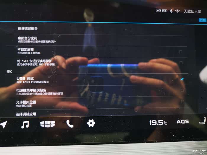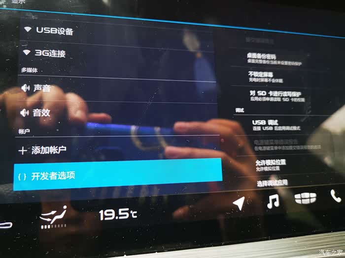 目录的最下端,点开开发者选项,在右侧右侧的USB调试处打钩允许。