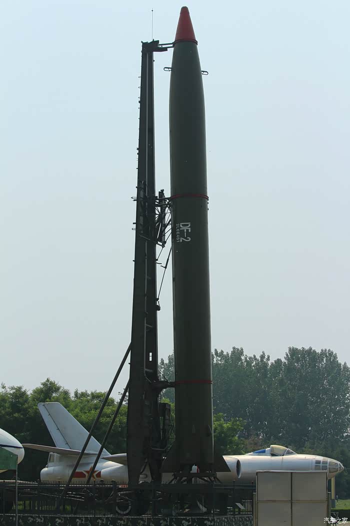 东风2号导弹是我国自行研制的第一代中程地对地战略导弹,全长21.314M,最大直径1.652M,尾部装有4个三角形尾巽,起飞重量29.78T,采用一级液体燃料火箭发动机,最大射程1300KM,可携带1500KG高爆弹头,工作时间125S。
