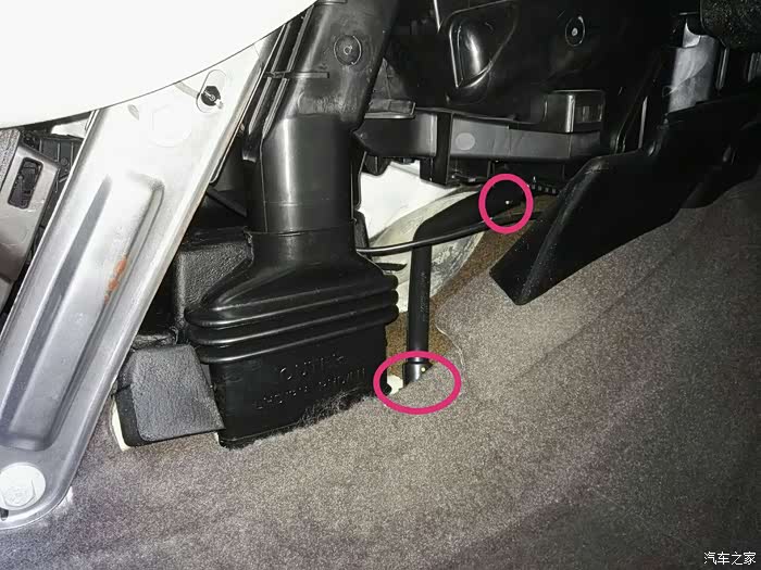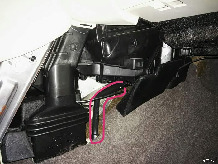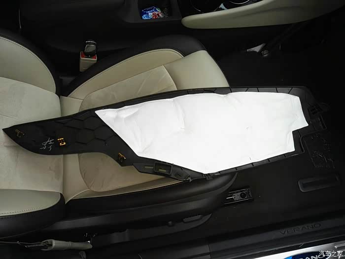 首先把副驾驶左下方的挡板卸下: