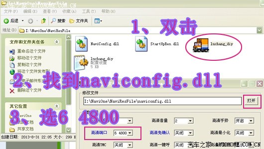 1、修改凯立德:打开导航卡目录下NaviOne\NaviResFile文件夹,打开图标出现下图中的文件并进行更改,别的参数都不建议动。。(记得哦!卡仕达116平台波特率是6 6800)