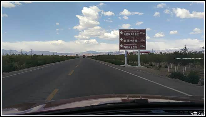 ~G30往西经由‘星星峡’这个入疆门户~终于再次告别了甘肃~真正进入了暂别四年多的新疆地界~~相对于大多数车友来说这就意味着将有更多的风景+更多的美食瓜果在等着我。~过‘烟墩’收费口不久前方就是哈密~你会发现有个‘S303’的路牌指向‘巴里坤’~~马上就要体验新疆的省道~奔往心仪很久的巴里坤草原~~