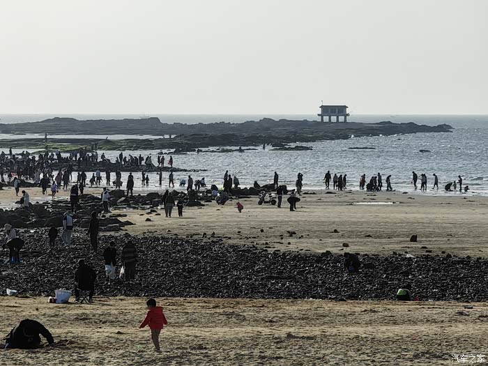 从祈福钟开始一路向北,看到沙滩上还聚集着很多刚刚看完日出的人们,甚至还有很多人走到了大海的深处,那是干嘛呢?去赶海吗?来张无人机视角的万平口,看看人群和风景