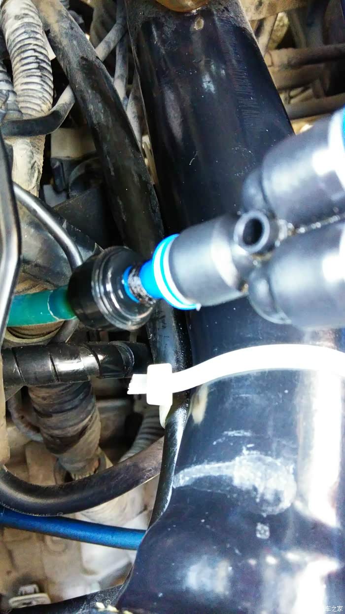 这是机油最后流到油底壳去了,平时也不用量机油,所以机油尺就放到后备箱里了,要量机油的时候拿出机油尺拔出这根管子就可以了。有了透气壶我现在跑八千多公里机油比刚换好的时候只下去一点点,正真实现了不烧机油的效果了。