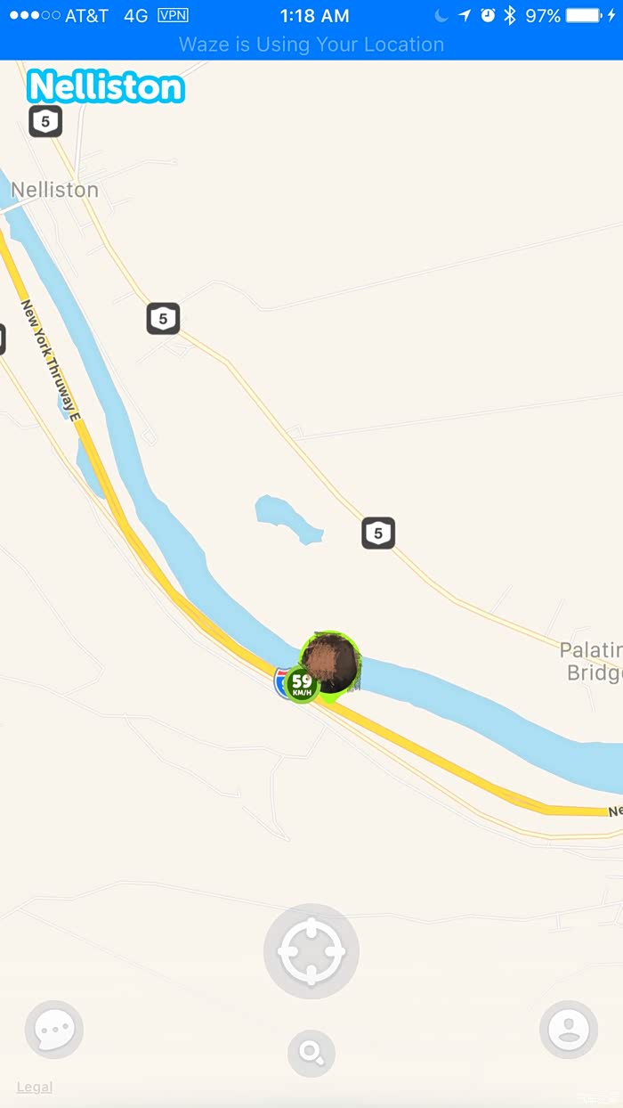 这是zenly上显示的前面Camry的速度 单位是公里每小时 这可是美国高速啊