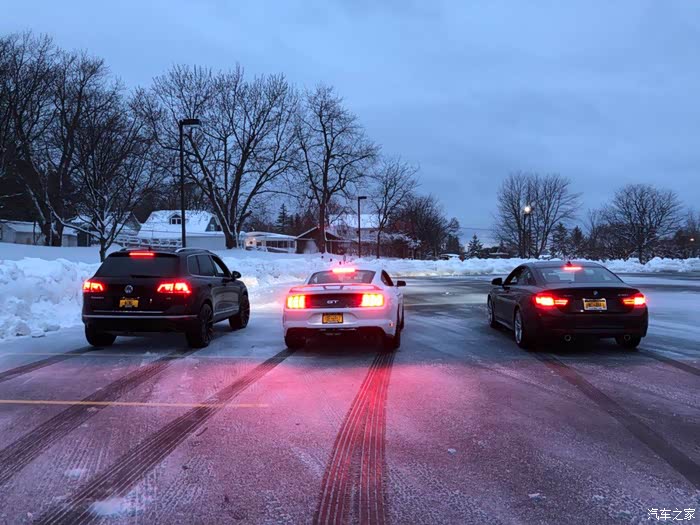 没想到一路高速相安无事 结果开到停车场门口 mustang在上一个小坡时打滑了 整个车横在路中间 根本上不去了 只能把车倒到路边(因为上坡已经上不去了 只能靠重力势能倒下坡)丢在路上等第二天扫雪车出来把路扫干净再开回停车场了