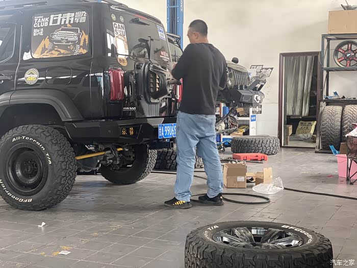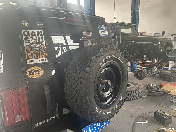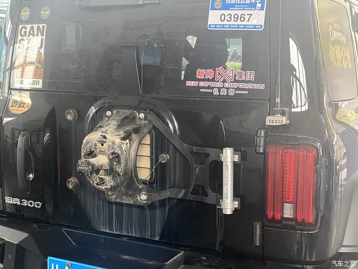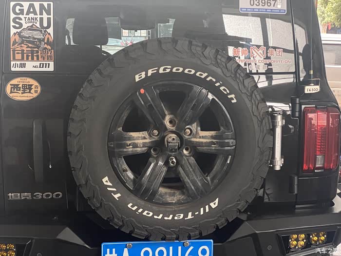 在买车的时候就已经更换了五条轮胎后面又更换了四个轮毂,当时角色后,备胎有原厂的罩子不需要更换轮毂,但是后来在越野的过程中发现,如果一旦爆胎,0值轮毂和原厂的轮毂无法进行更换使用。所以定了一个轮毂,然后再拆卸后,备胎的时候可以再加装一个高位刹车灯和高位行车灯拆轮毂的时候,会把备胎拆下来这样装起来一趟子比较方便。