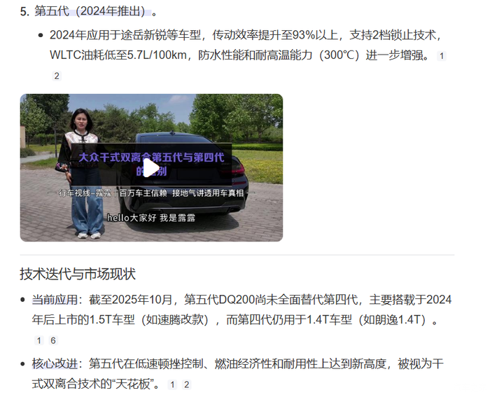 这是上汽大众官网凌渡的介绍,明确说明用的是第五代干式双离合,不知道朗逸是不是第五代