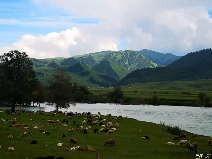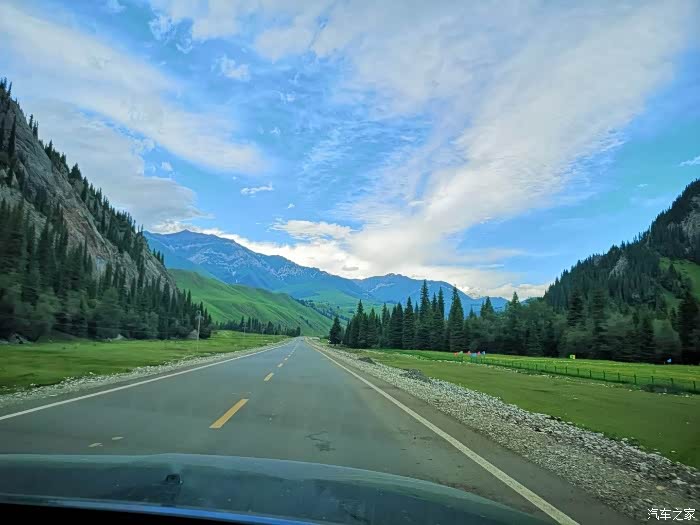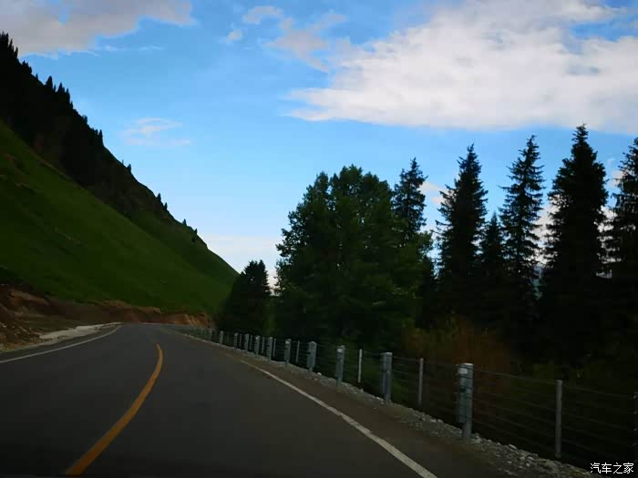 今天行程安排主要有两个看点,一是百里画廊看美景、二是乔尔玛烈士陵园敬个礼。从特克斯出发,过巩留,车头朝北,跨过喀什河到尼勒克县,走315省道一路向东,下午七点半到乔尔玛。