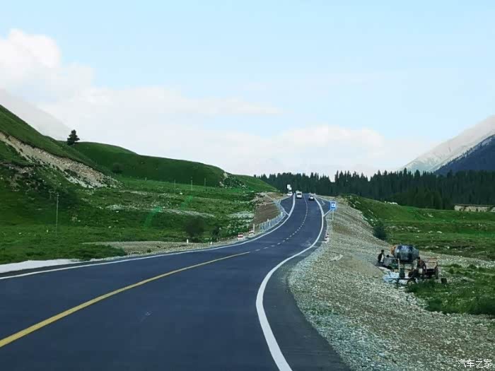 特克斯县到乔尔玛有两条可选的路,一是走218省道到新源,然后向北走乡道过喀什河上315省道;二是走220省道从巩留向北过喀什河直接上315省道。由于事先没有好好做功课,对315路况不了解,对百里画廊起点、终点不清楚,对新源到315的乡道不信任,主观臆断的走了巩留向北直接到315省道,结果315省道尼勒克县以东到黑蜂庄园全程修路,导致走了一百二十多公里正在铺设路基的修路路段,难走程度为五星。