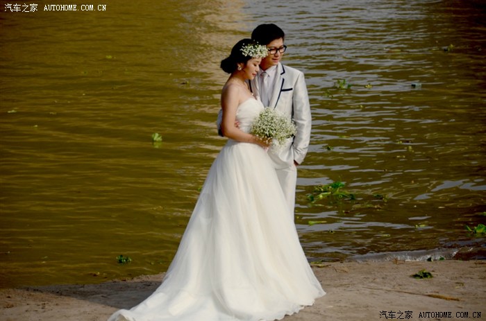 两年前,江滩边成了新人们拍摄婚纱照的圣地:不小心偷拍了一张,镜头拉近看,新娘很害羞
