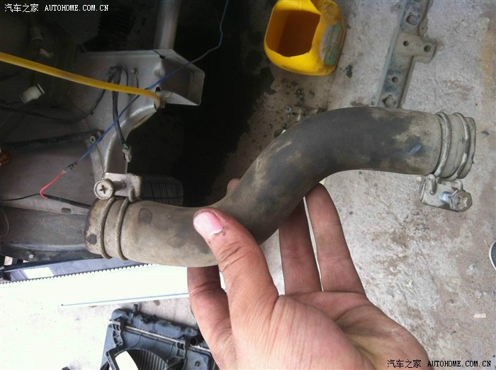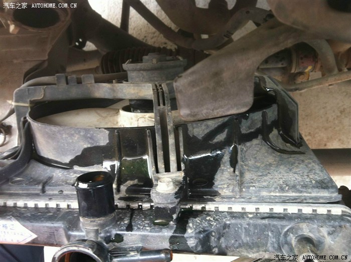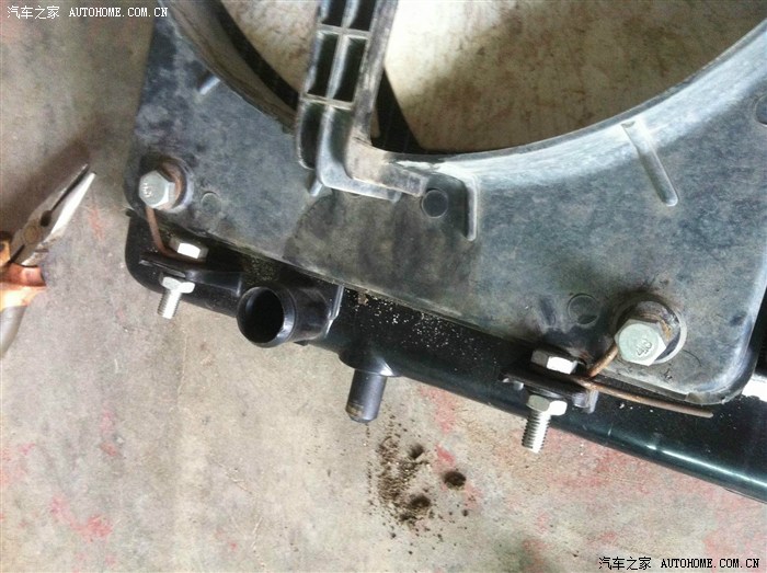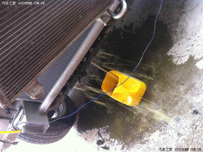 对了拆水箱之前先把水箱内部的防冻液放出来,看看放出的防冻液很浑浊了。