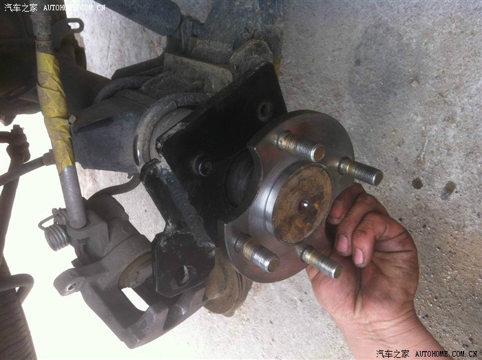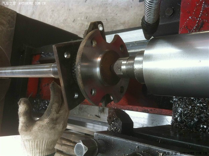 然后制作一个中心垫圈装到半轴的轴头和刹车盘的中心孔处,此处间隙之前有接近2mm所有刹车盘始终窜动,动平衡不好,直接中心垫圈解决。