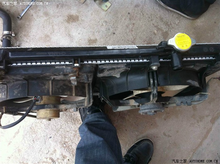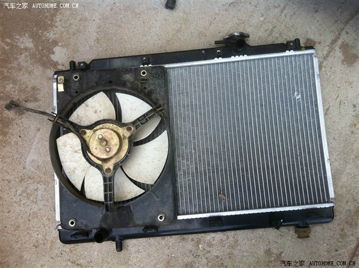 装好风扇的水箱总成,水箱是青岛东洋的,说来惭愧身在青岛竟然在重庆购买的。