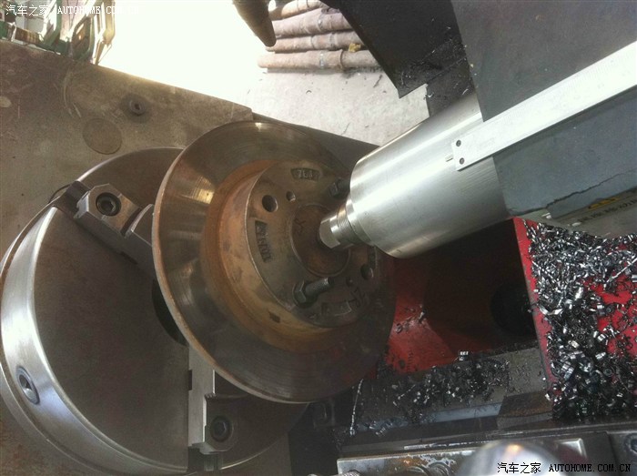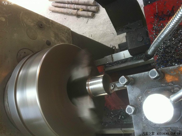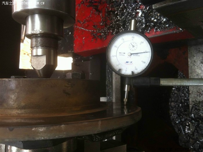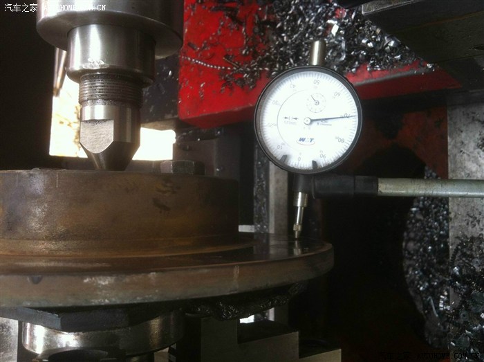 之后将加工好的半轴同刹车盘连接起来,装到车床上面用百分表测试刹车盘的摆动情况,经测试所有的刹车盘摆动都在25丝之内(0.25mm,2-3根头发丝的厚度)。