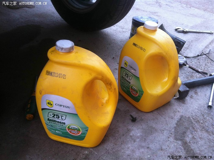 这次使用的是康普顿的防冻液,一桶是4Kg,换完大水箱后2代用了1.2桶。