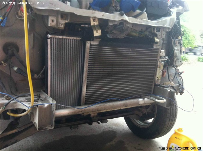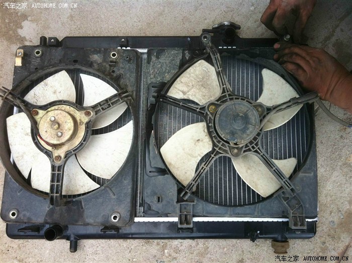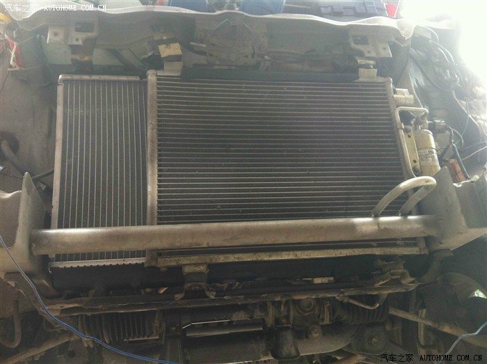 我的二代的水箱由于原车的水箱被劣质防冻液给堵了,更换的副厂水箱太薄,水温上升很快。由于哥们的2代改了大水箱我也果断改,边上图边说: