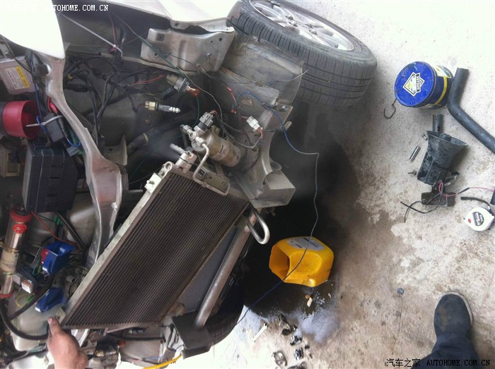 首先拆掉前杠,前杠是刚换的副厂的,质量一般。