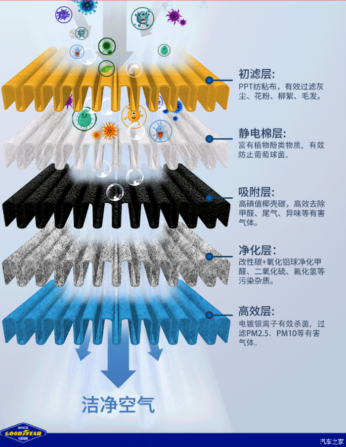 三方滤芯目前用过博世和固特异的,固特异的宣传过滤层数多,功能更多,有“银离子抗菌涂层”。主观感受博世的更好一点,出风量更大,活性炭过滤效果不错。