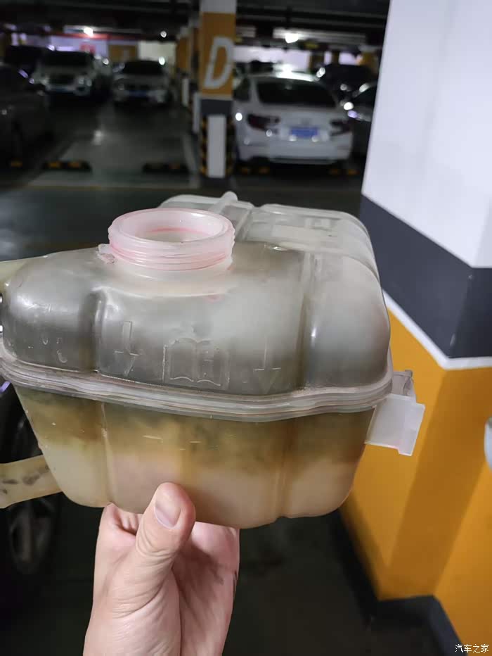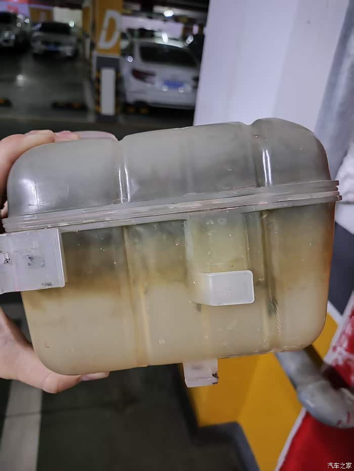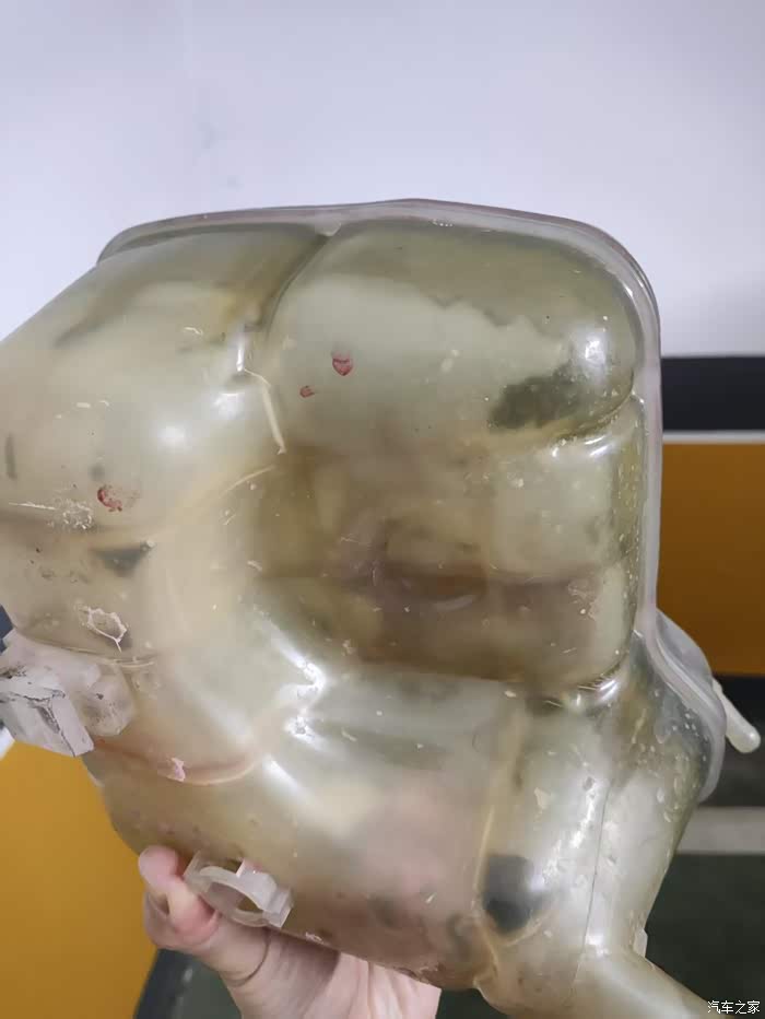 2年前机油散热器损坏,水壶里飘着的乳化物一直残留在里面,看起来像浆糊很不干净