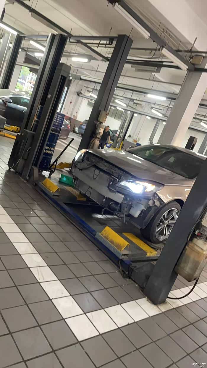 在做四轮定位,当时是同步更换的进气管,所以前脸也拆了