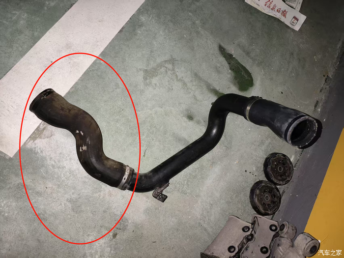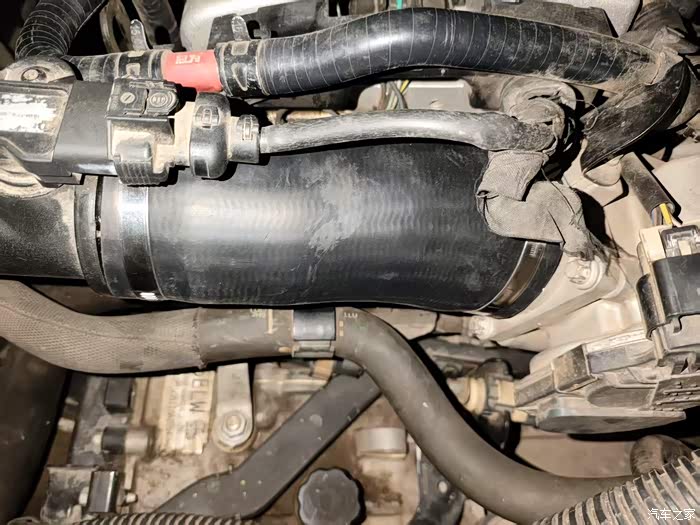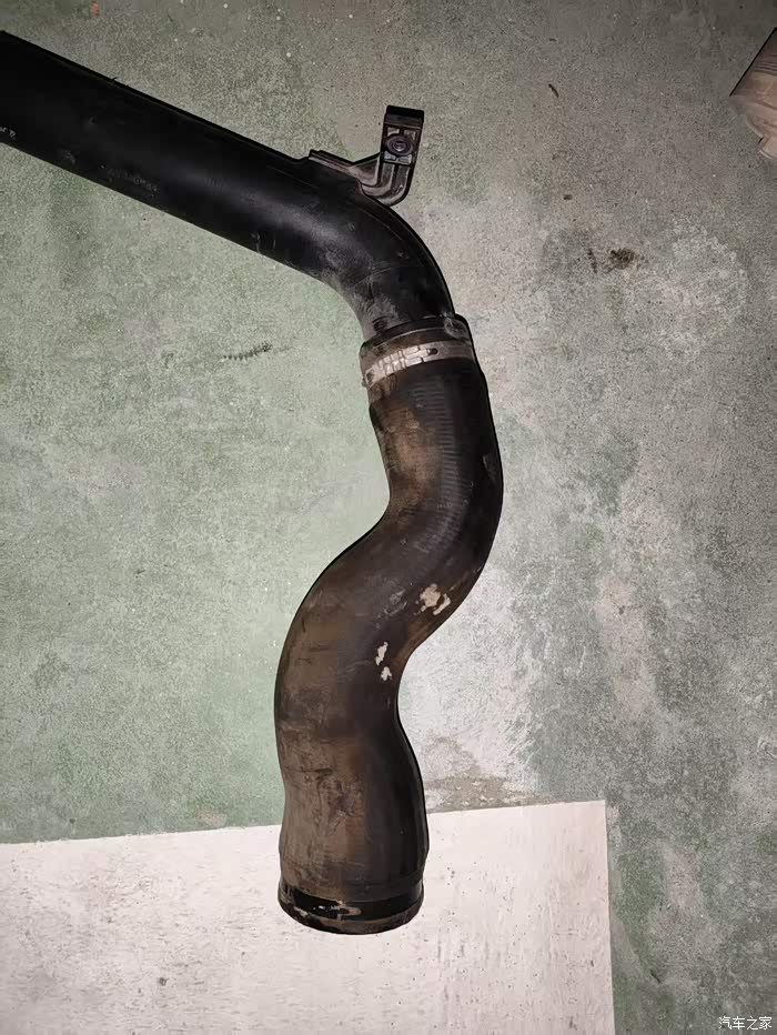 这个问题解决后,车子毕竟太老,整段进气管慢慢还是不行了,过了一年,三段式的进气管的最下面,我也发现有油渍。再次询问4S师傅,表示没有办法单独更换最下面的管子,必须全部换新