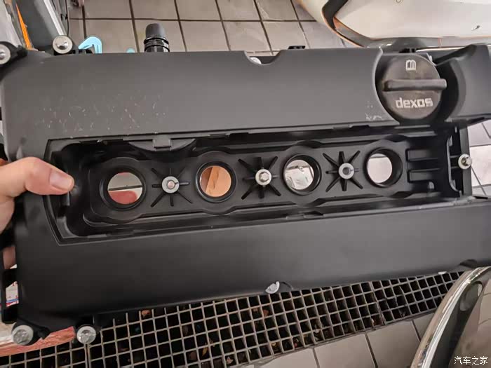 原厂盖子不附赠机油盖,师傅临时搞了一个。亏得我之前一直保存了旧机油盖,回家就替换上
