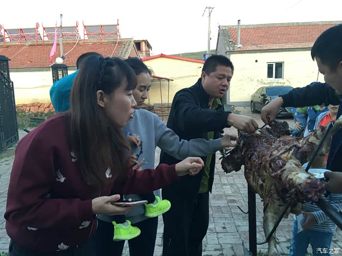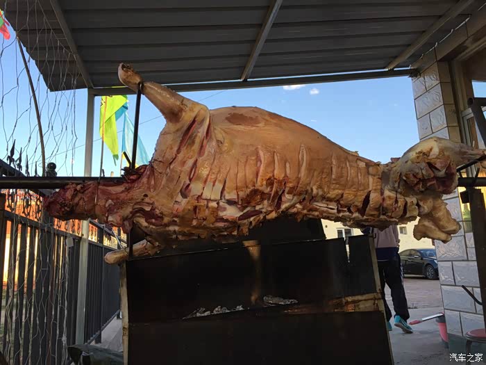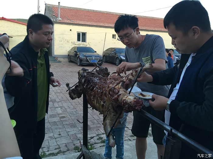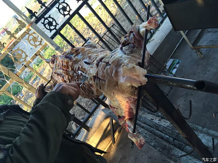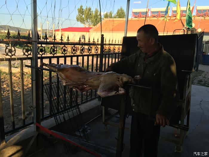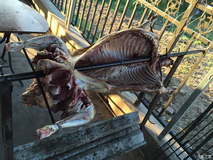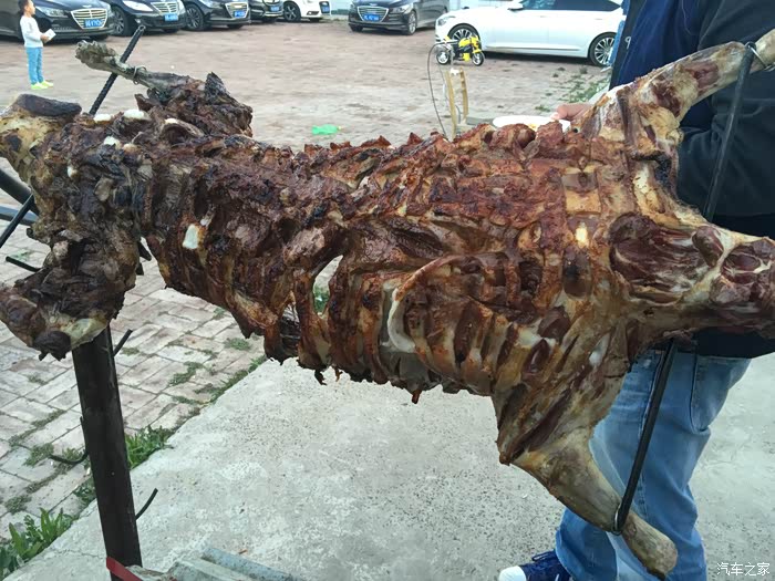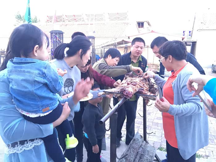 大家闻香而来,将架上的全羊围住,粗犷的就手撕着吃。