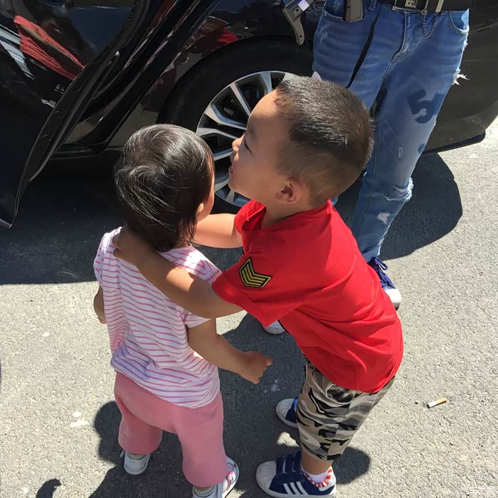 大家在院子里看着孩子们追逐玩耍、骑车玩的真是开心。