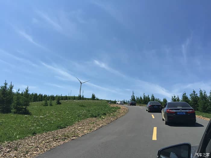 到达草原天路,车行驶在山间路上,仿佛在天上,与蓝天白云如此近距离。