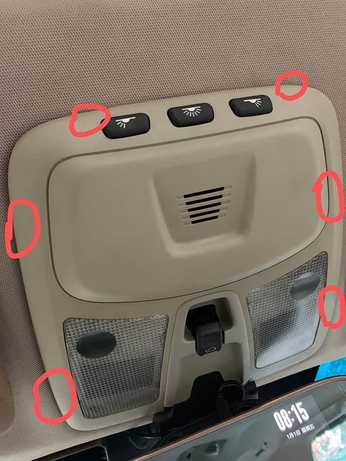 。 主副驾礼貌灯,都是先用T25的异形螺丝刀拆开内饰塑料面板