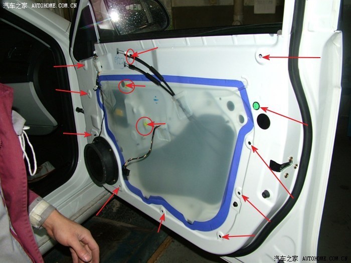 两个后门我估计除了卡扣位置稍有不同,螺丝位置应该跟右前门差不多,要拆的话可以参照右前门。