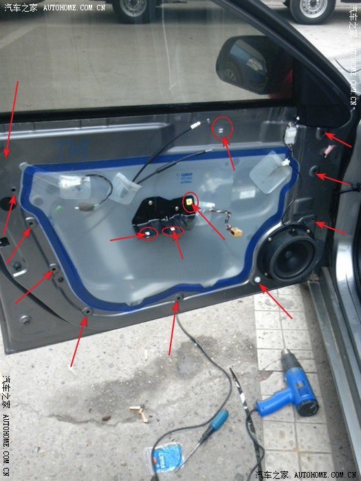 前两天为了调整喇叭分频,自己把车子两个前门拆解了一次,顺便发个帖,我也不是专业人士,只是根据自己的理解乱写的,可能还有讲的不到位的地方,大家补充。