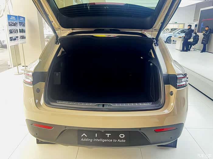 问界M5的后背箱的容积也是一大亮点,后备箱采用了下沉式的设计,而且后备箱的开口很大,非常方便拿取后备箱物品,而且座椅还支持按比例放倒,可以进一步拓展后备箱的空间。