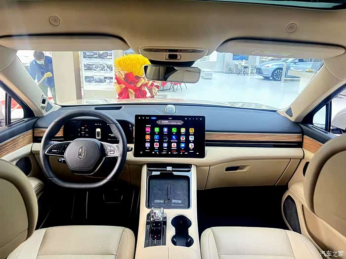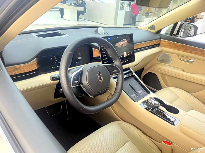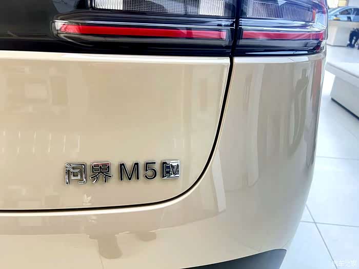 问界M5的内饰设计没有过多的复杂装饰取消了实体按键,简约大方,整体质感不错。中控台配备了大尺寸屏幕非常醒目,得益于华为的鸿蒙系统与麒麟芯片,操作起来非常流畅、方便,也增加了车内的科技感。全液晶仪表盘可以显示激光雷达侦测到的路面车辆行驶情况以及车身两侧的车辆停放位置和车距,以及大部分的车机信息也都可以显示到液晶仪表盘上。中控台中间层采用了木纹装饰配合加装的水晶档把则大幅提升了车辆的豪华感。全系标配了高清抬头显示功能,非常有助于驾驶员的安全驾驶。全车音响均为华为自主品牌,调教来说也可圈可点,唯一不住还是需要好的音源来凸显音响效果。在主驾A柱内侧设置了脸部识别系统,可以根据驾驶员面部信息存储座椅设置和方向盘设置等等,而且车内反光镜前也配备了车内摄像头,可以方便的观看到后排乘客的情况。这些设计也透露出M5都是从安全驾驶方面考虑的。座椅采用目前主流的打孔纳帕皮材质,前排座椅标配有通风加热,后期也可以通过加装包加装后排座椅通风加热和前排座椅按摩。整车的空间表现很好,将近两米九的轴距使得前后排的乘坐空间都很充裕,在主驾调节好座椅后,二排腿部还能有一拳的距离。座椅坐垫的支撑力和包裹性都非常舒适,尤其是对腿部的支撑就算长途驾驶也不会感到过于疲惫。