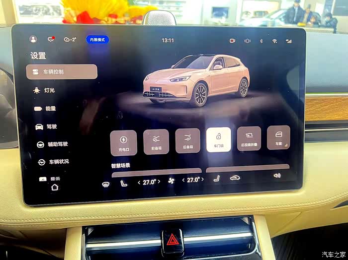 取消了实体按键,所有功能都可以通过这块车机大屏操控,当然也可以通过语音操控。流畅度与反应速度都是非常快的。