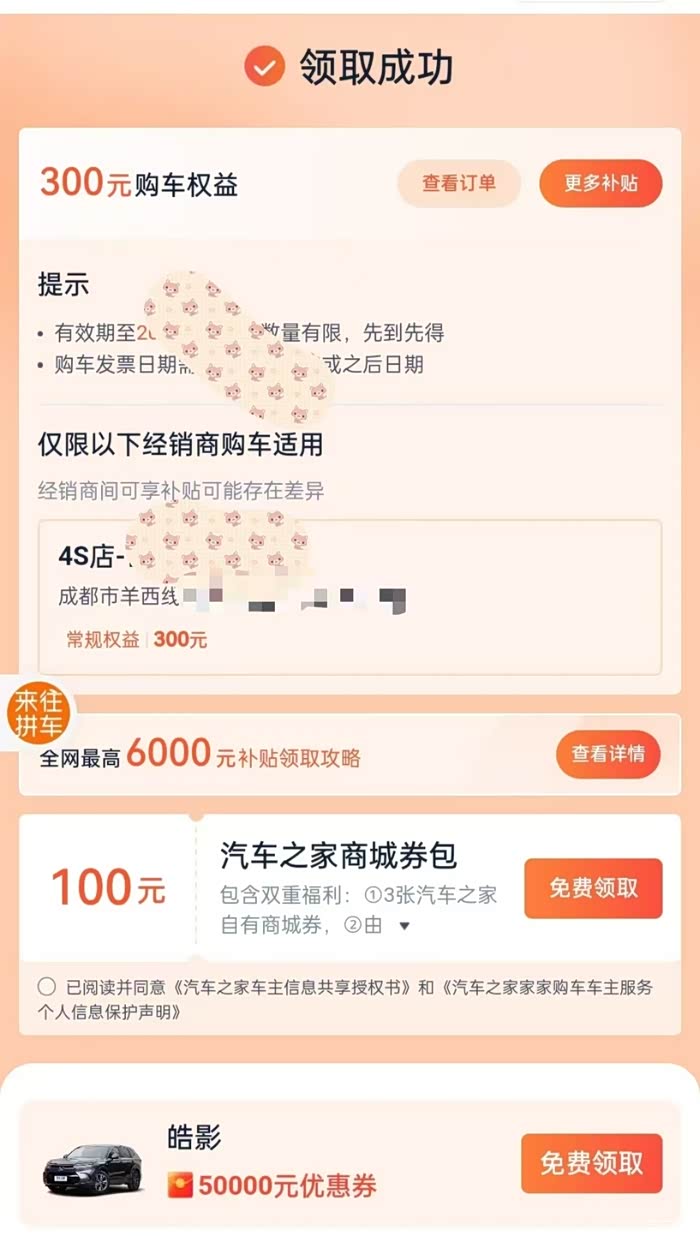汽车之家超级补贴 点击领取 所有活动品牌额外 补贴300-5000不等,由之家平台发放,和4S无关,至少提前一天领取