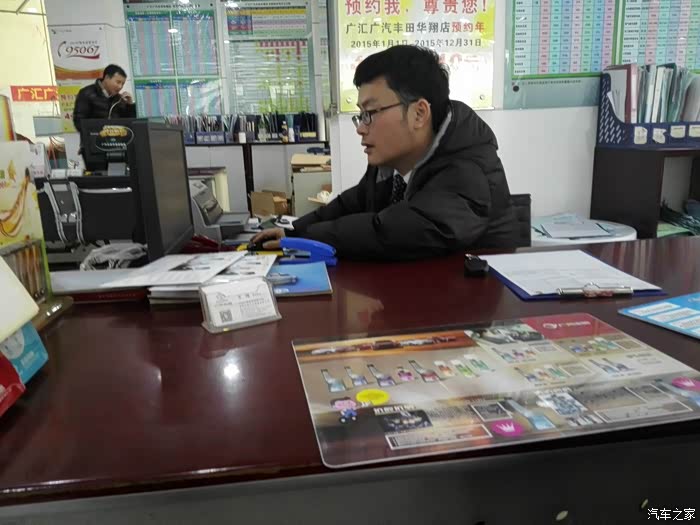这是小帅哥在帮我进行首检登记手续,很认真赞一个。还跟我核对了一下要检查和更换的东西,因为这次是免费的,保养手册上说明了要更换的东西,就是机油和机滤。其他都是检查项目。