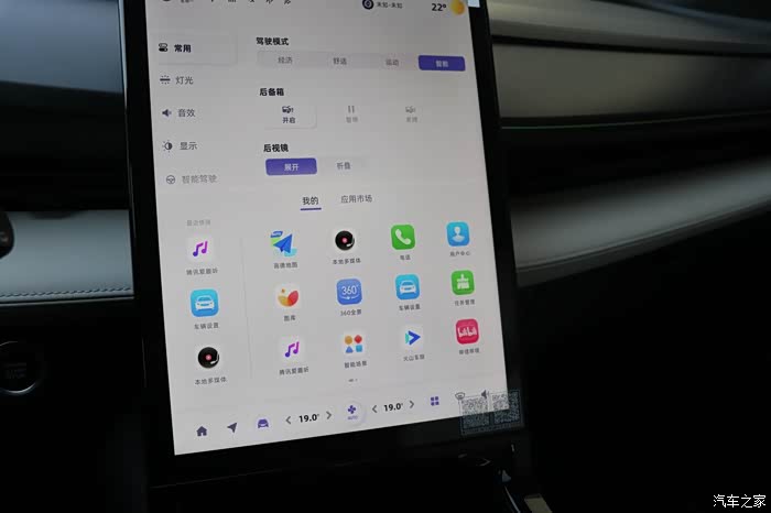 当然除了外观外,我和老婆也被它的内饰吸引,坐进车内视野特别的开阔,中控台大面积的软包和座椅的皮质手感都很好,做工很精细,而且中控台面的设计很有科技感,仪表盘和中控屏都采用了大屏显示,看起来更加的清晰,尤其是中间的这块竖置中控屏,4G网络使用起来特别的顺畅,不仅有车内的功能设置而且还有360度的全景影像显示,媳妇独自驾驶在拥堵的停车场也能够泊车自如。还有它皮质包裹的方向盘,也很有质感,两边设有功能快捷键,一些常用功能随手就能操控,很棒。